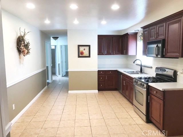 Great location in north San Bernardino, Corner lot facing West on cul-de-sac street... Property features new kitchen cabinetry, Quartz counter top, new sink, stainless steel appliances ...Living room with vaulted ceiling, fireplace, french doors,wood floor throughout all bedrooms, large corner lot with nice size back yard..*** A Must See***.Heat: CF,GH,GAS,FIR