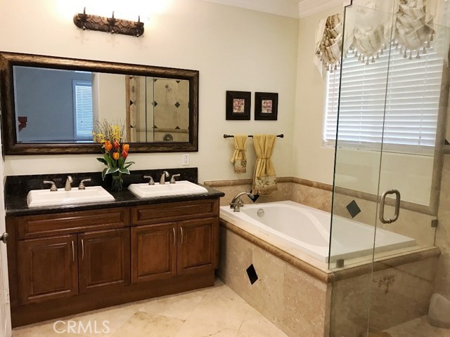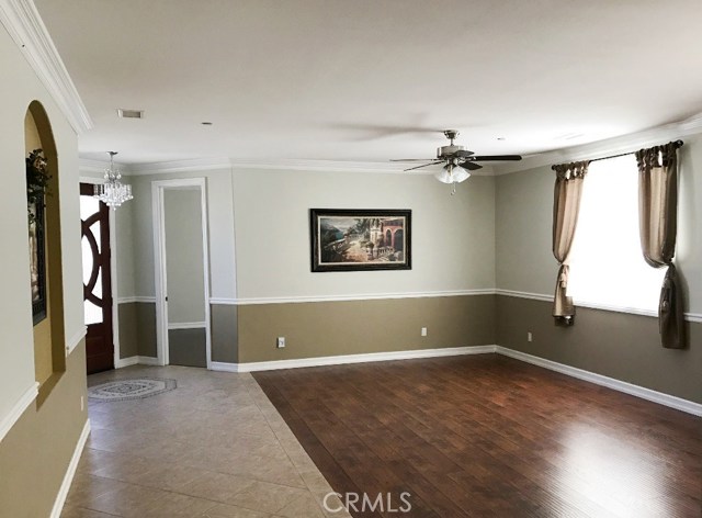 Beautiful single story house in City of Riverside, Newer home in big lot 17,000 sqft, wrought iron gate, nice landscape, entry double doors to open floor plan, fresh paint, chair rail, crown molding, wood floor and ceramic tile floor, through out 2,727 sq ft house. Upgrade feature all kitchen cabinets and baths, granite counter top... Huge cover patio look out nice back yard and landscape. A must see....Heat: CF